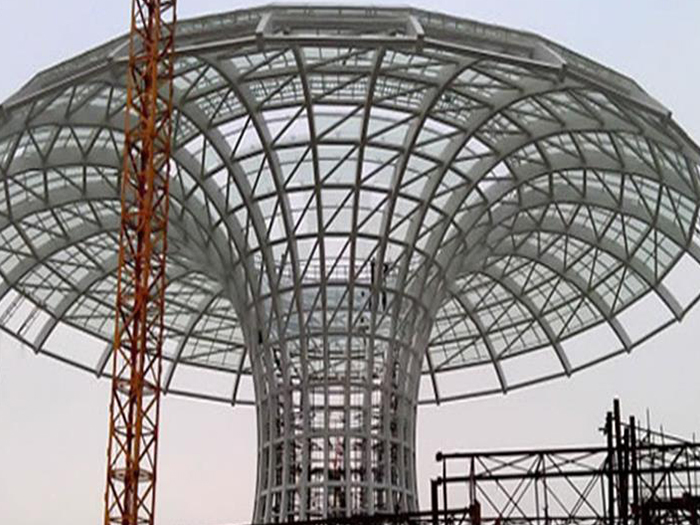 二、球形网架结构因其结构新颖,受力合理,自重轻、用钢量低等优点。如大型体育场馆球形遵义螺栓球网架、公共场馆球形网架、电厂遵义螺栓球网架、水泥工业球形网架、仓储物流球形网架、遵义干煤棚工业球形网架、遵义收费站遵义加油站球形网架、展览中心、影剧院、商场、航站楼、候车厅、工厂遵义车间、仓库、电视塔等球形螺栓球节点网架。国内球形网架结构主要分为:遵义焊接球节点网架及螺栓球节点网架两种。螺栓球节点网架其构件工厂内加工量较大,现场安装便捷,适用于现场工期紧,遵义施工条件、用电量受制约,网架形状复杂、遵义杆件定位困难的异形结构。螺栓球节点球形网架系统基本由遵义杆件、螺栓球、支撑支座等组成。按照节点形式可分为交叉遵义桁架体系、四角锥体系、三角锥体系等。支撑方式多为固定支座支撑。对于大面积、大跨度及有特殊受力或伸缩要求的网架结构可采用橡胶支座、滑移支座、球铰支座等支撑形式,以满足结构自身的受力稳定、均衡,便于内力释放等设计要求。